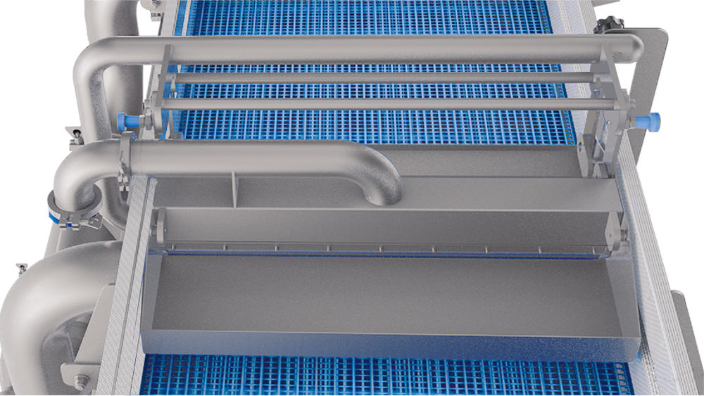 The unique 4 way suction design can effectively suck away the accumulated water on the net belt, prevent moisture backflow, and ensure that the vegetables remain dry during the conveying process.