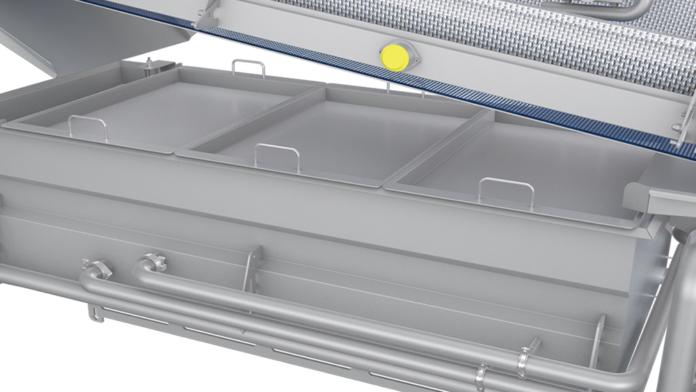· Hygienic Design: Tool-free quick-release conveyor belt, sanitary piping connections, tool-less filtration system, and open-access tank ensure full sanitation compliance.